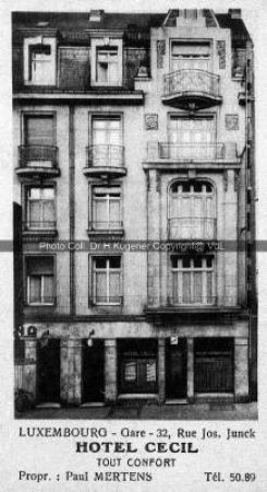 Les anciens Hôtel Regina et Cécile à la rue Joseph Junck témoignent d’une certaine fièvre des investisseurs dans les années 1930. L’exemple de ces deux hôtels illustre également à quel point, l’hôtellerie pouvait servir de lieu d’accueil pour accueillir et loger, de façon intérimaire une population venue de l’étranger au Luxembourg pour servir dans diverses entreprises. Avec les établissements Cécile et Régina, nous découvrons un type d’hôtel très différent de celui des hôtes de marque du Gouvernement, des maisons travaillant avec des marchands de bétail, des commerçants et des notaires, ou encore des représentants recherchant Luxembourg comme destination d’affaires.